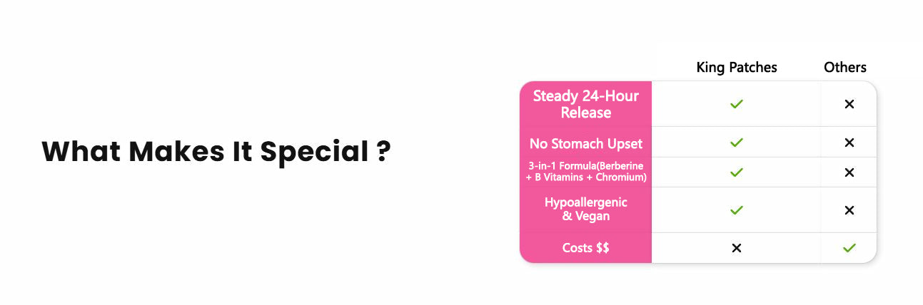 Great question! Most berberine pills lose up to 90% potency in digestion (per NIH studies), while generic patches often skip third-party testing. King Patches stand out by: